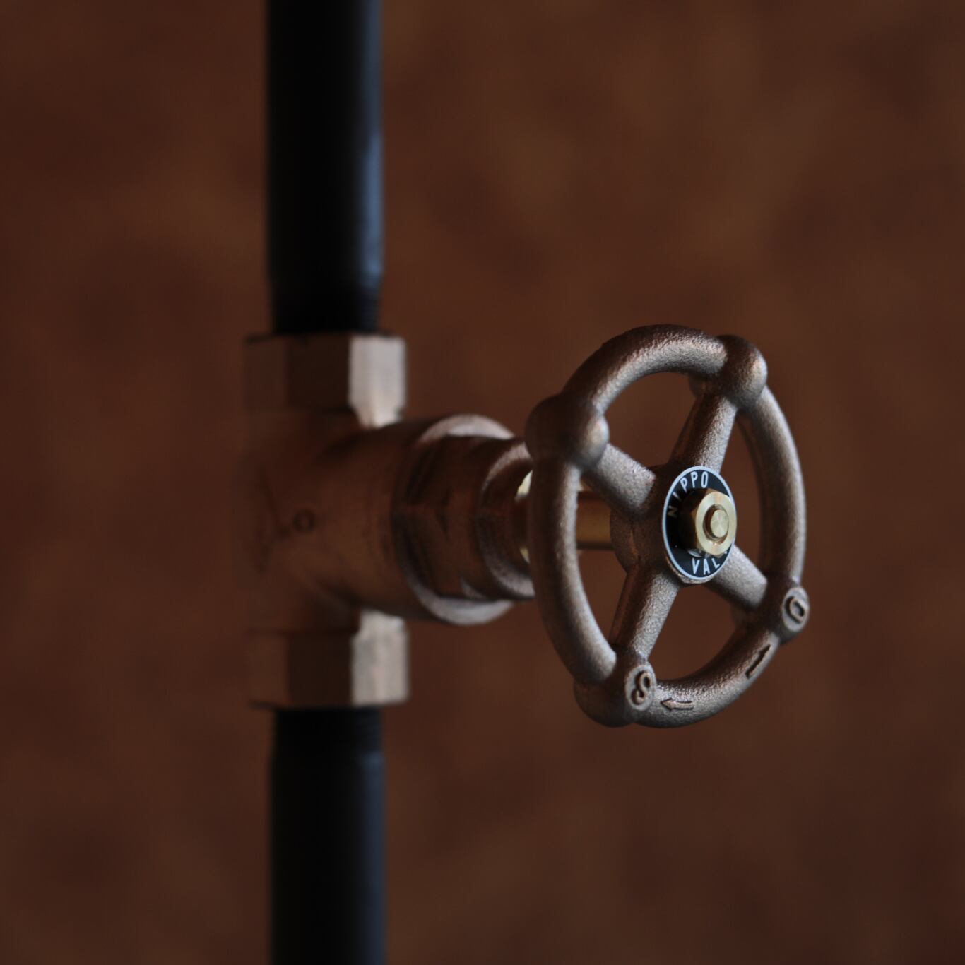 本来は水道設備用として使用される“バルブ構造”を採用しながら、インテリアや照明に使用できる特許取得のスイッチで、工業的で無骨な空間や、素材感を活かしたスタイルに最適です。